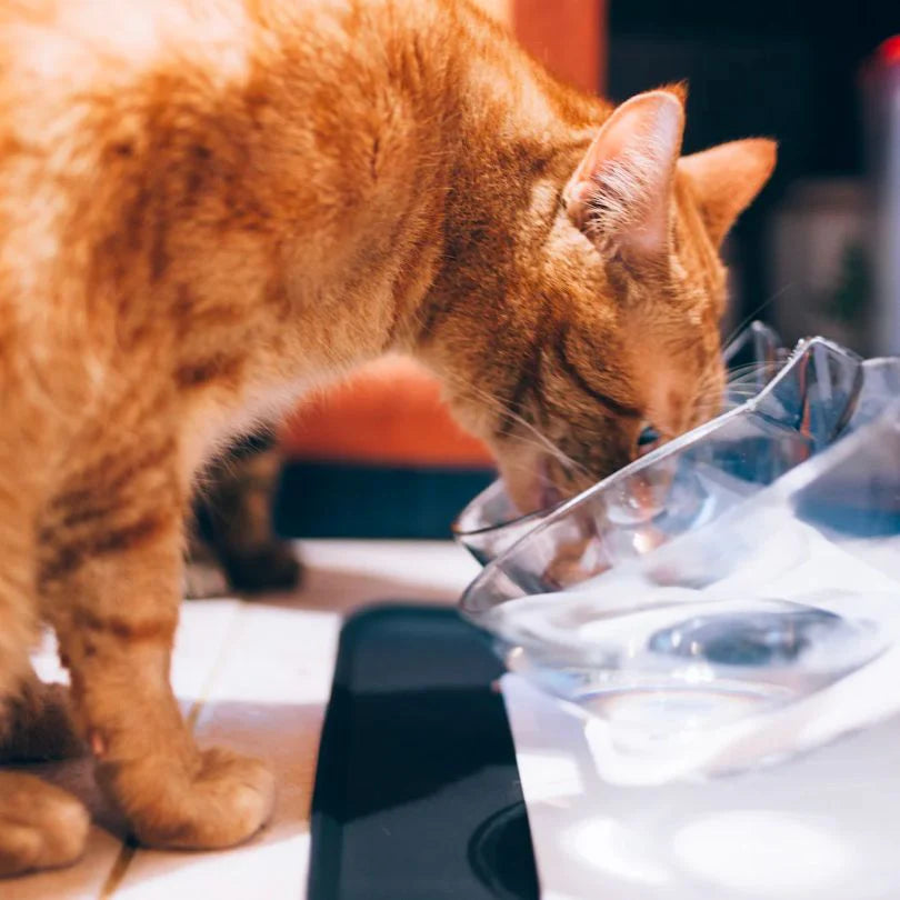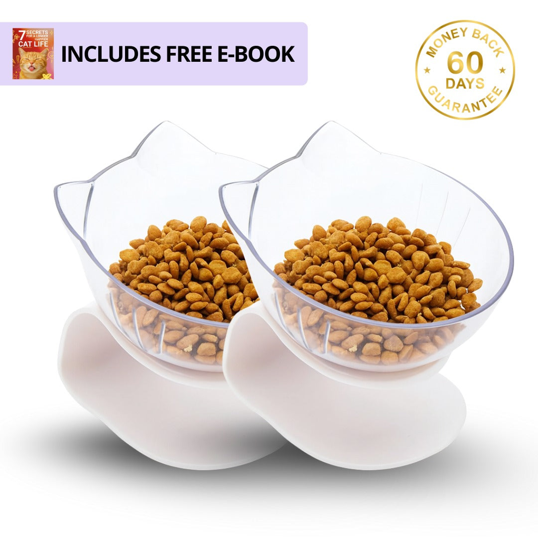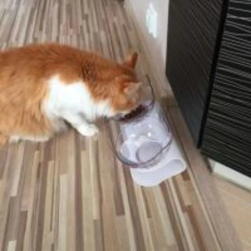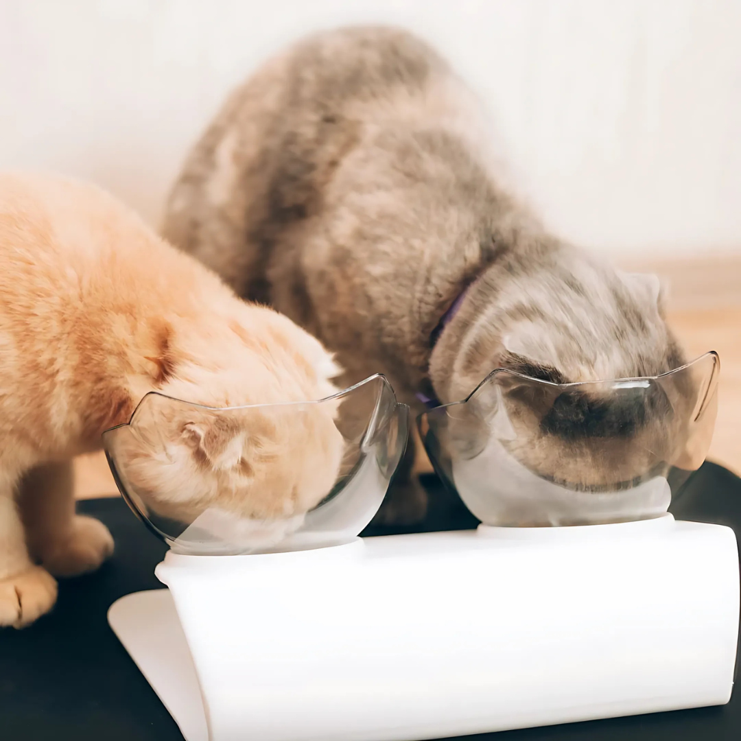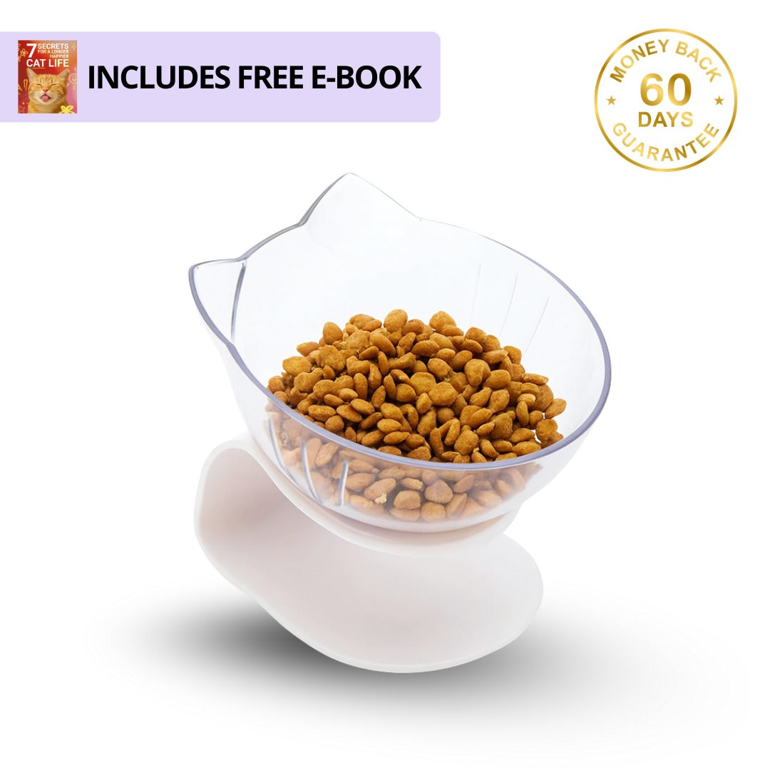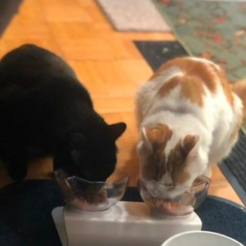 Cats often “scarf and barf” from floor-level bowls—bending low, gulping air, and pushing food uphill through the esophagus. That can trigger post-meal vomiting, gagging/foam, and reflux. A tilted, elevated bowl uses gravity to help food travel down smoothly and lets your cat eat in a natural, relaxed position. Result: less vomiting and calmer digestion.